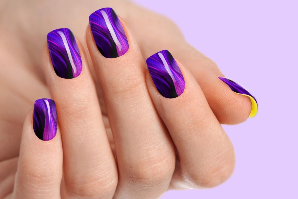 Por fim, o efeito marmorizado já está se tornando um clássico no mundo da manicure. Com o roxo, é possível misturar a cor com tons de branco ou preto, imitando a aparência do mármore.