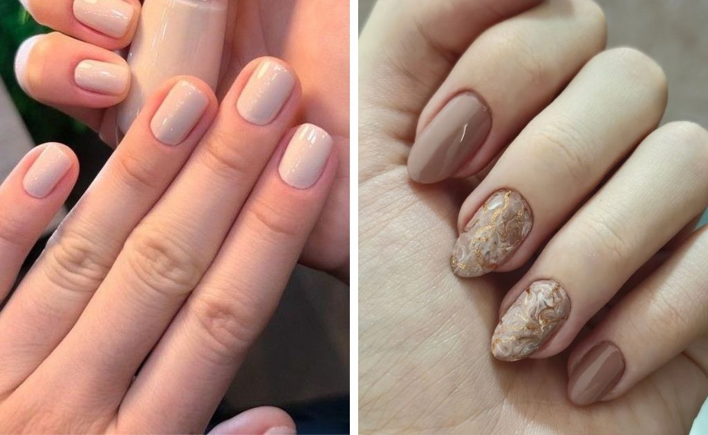 Além do esmalte cremoso tradicional, há espaço também para acabamentos mais trabalhados, com brilhos discretos e efeitos visuais que atualizam o tom neutro.