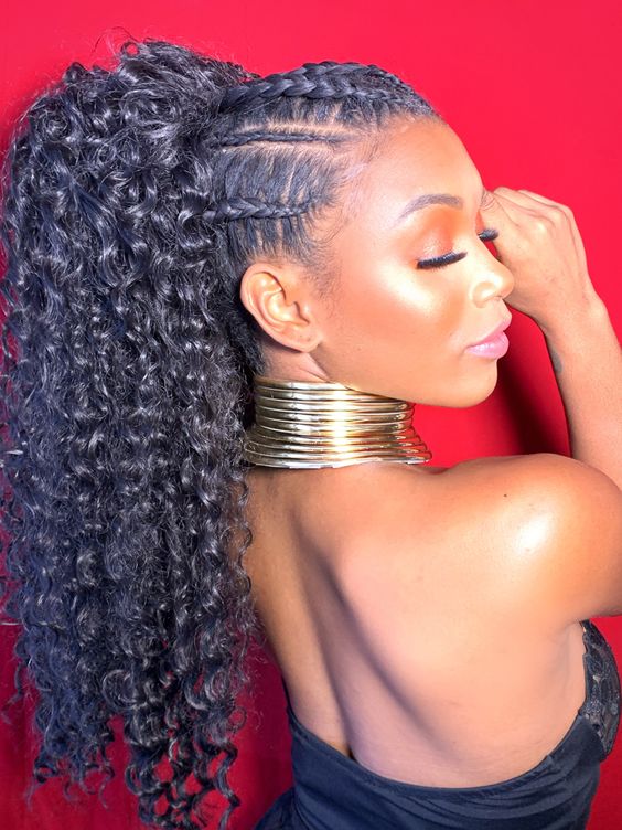 Considerado uma opção versátil, assim como extremamente elegante, o rabo de cavalo pode trazer os cachos bem definidos em uma posição mais alta. Além disso, trazer tranças para deixar o visual ainda mais incrível na formatura.