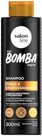Em primeiro lugar da nossa lista de shampoos de engrossamento para cabelos finos e ralos, temos o SOS Bomba, desenvolvido pela Salon Line. Segundo a fabricante, a opção traz ácido hialurônico na composição, assim como aminoácidos, creatina e queratina vegetal.