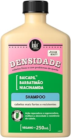 Assim como o rapunzel, outra versão desenvolvida pela Lola Cosméticos entra como opção entre os shampoos para cabelos finos e ralos. Intitulado como Densidade, o produto traz em sua formulação três compostos importantes: baicapil, barbatimão e niacinamida.