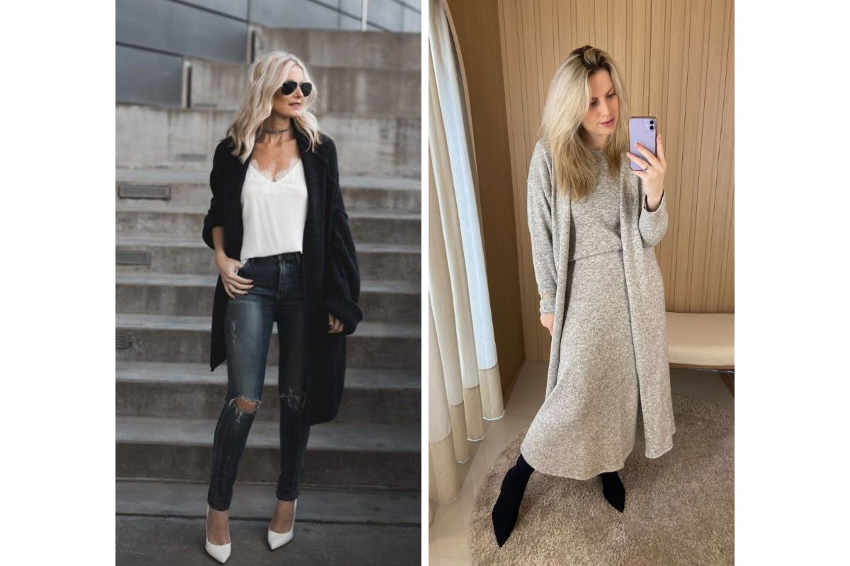 Nenhum guarda-roupa de inverno estaria completo sem um casaco de tricô aconchegante, certo? Esse é um dos casacos mais clássicos e atemporais para o inverno e é perfeito para criar looks confortáveis e estilosos nos dias mais frios.