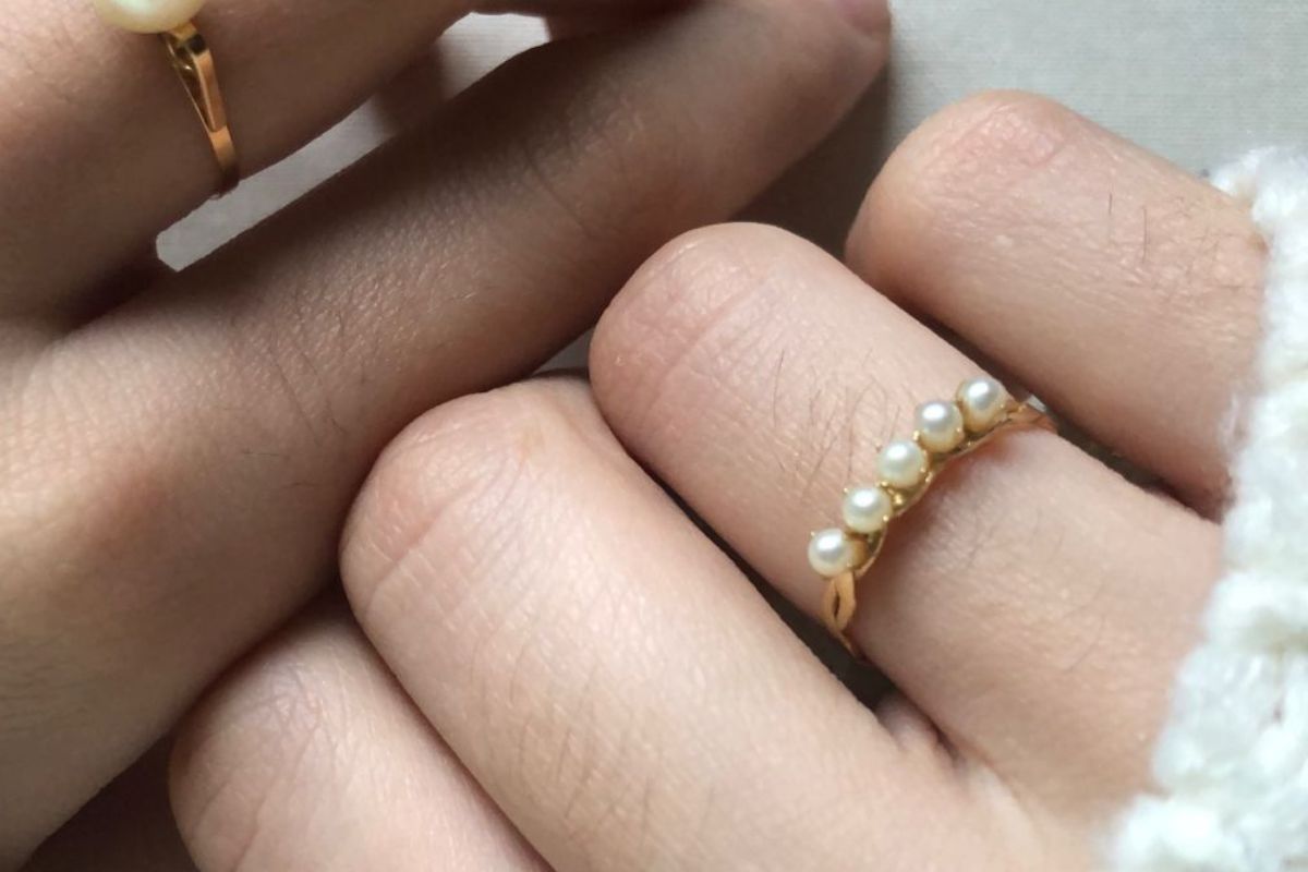 Anel cravejado de pérolas
