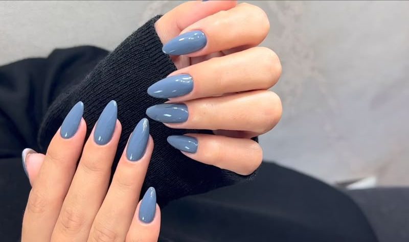 O azul empoeirado é uma versão mais suave e discreta dos tons de azul vibrante. Essa cor transita bem entre o casual e o elegante, funcionando tanto em unhas curtas quanto nas alongadas.