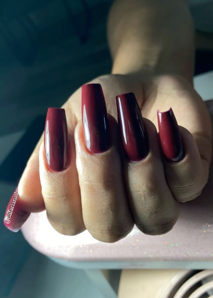Se a ideia é passar poder e atitude, o vinho e o marsala entregam tudo. São cores escuras e marcantes, que contrastam super bem com o formato alongado.