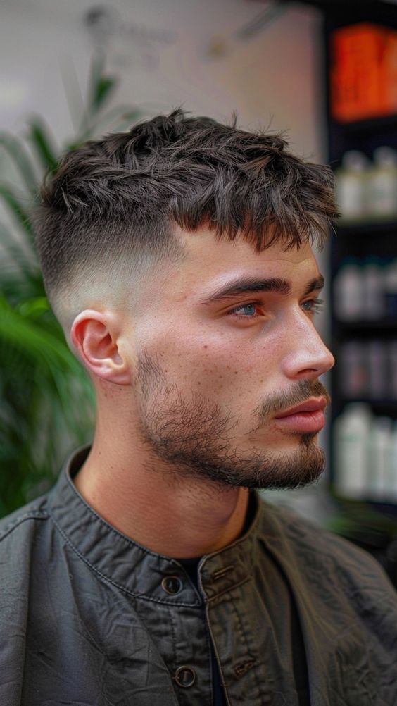 O corte degradê Caesar, por outro lado, é uma alternativa para quem gosta do estilo vintage. Trata-se de uma opção em degradê na lateral, com franja cortada na horizontal e jogada para frente.