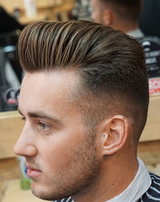 Os cortes de cabelo com degradê Pompadour, por outro lado, estão entre as alternativas antigas, mas super em alta nos dias de hoje. O corte valoriza o topete dos anos 50. O efeito gradiente na lateral ajuda a modernizar o corte, repaginando-o.