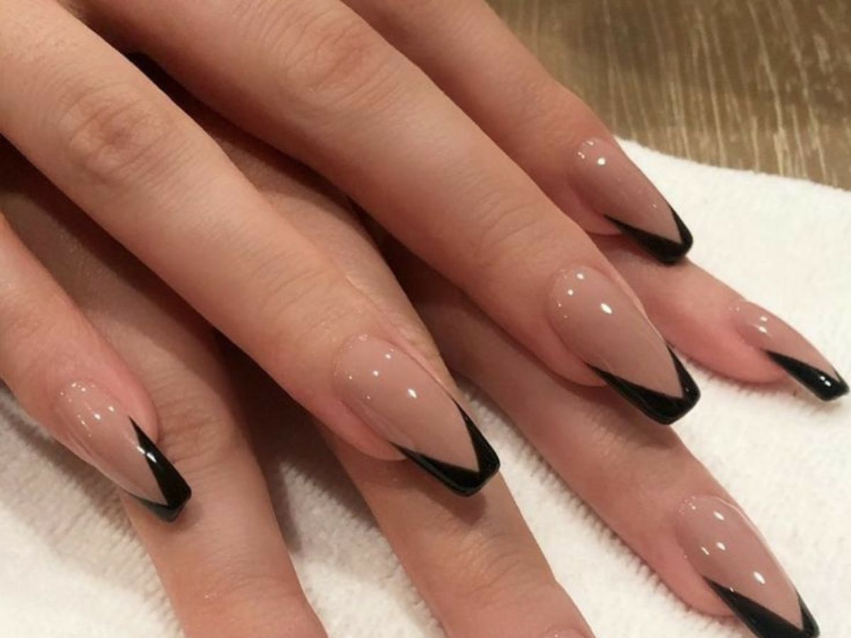 Em primeiro lugar, precisamos falar sobre o quanto a mistura do nude com preto é elegante. Além disso, é possível tornar essa combinação de esmaltes ainda mais icônica ao aderir à uma nail art ousada, mais sofisticada ao mesmo tempo, como o exemplo acima.