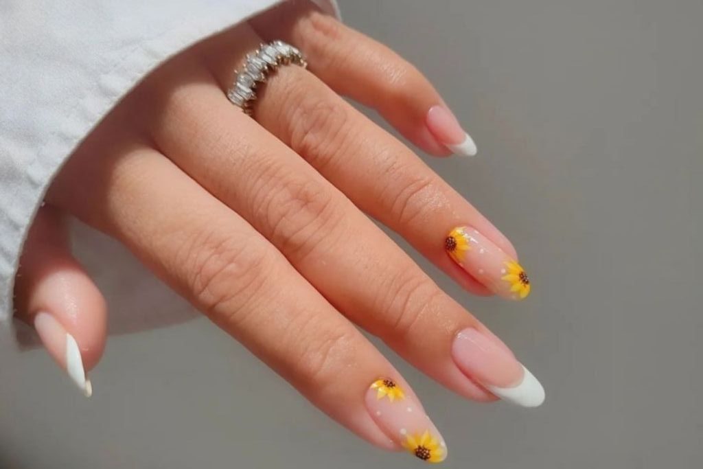 Quer uma unha alegre e com vibe de interior? O amarelo com girassóis é a sua cara.
