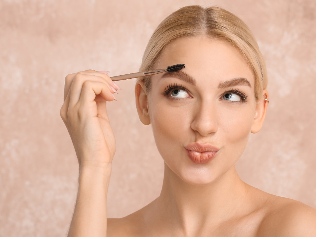 Formato ideal da sobrancelha. Foto tem uma mulher loira penteando a sobrancelha