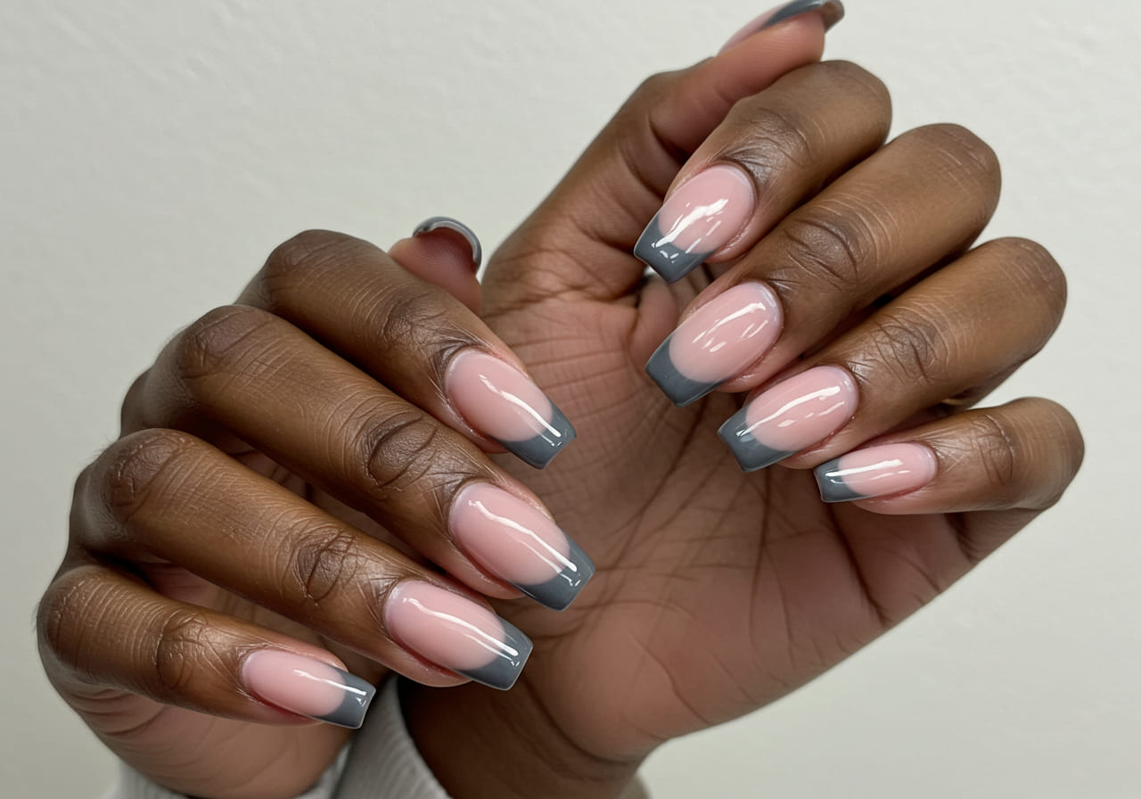 Quando combinado com pontas em branco leitoso, forma uma francesinha elegante, ideal para quem quer inovar com sobriedade. Funciona bem em unhas quadradas ou amendoadas, tanto curtas quanto alongadas.