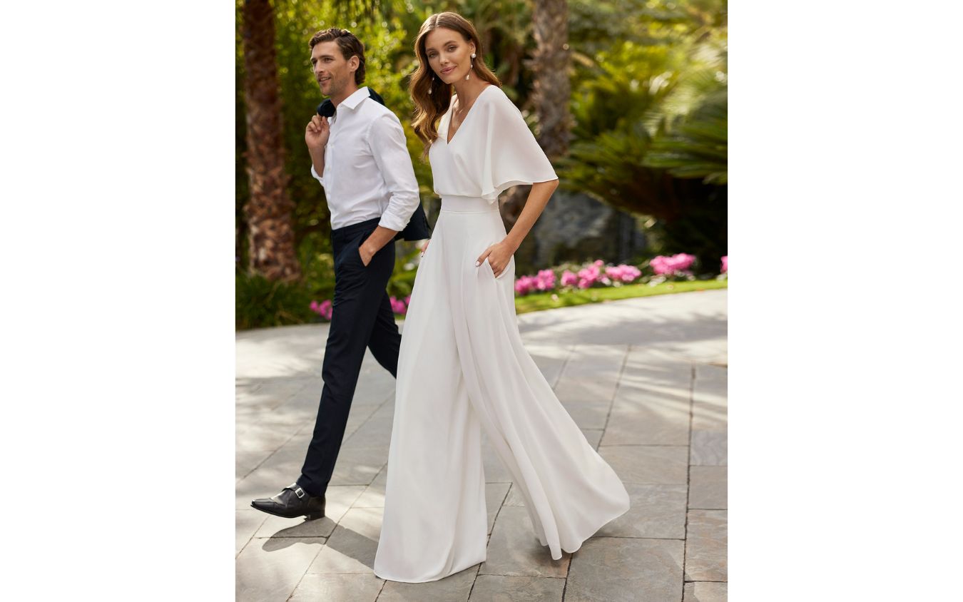 Muito estilosos, os macacões são a cara do poder, e perfeitos para as noivas que não desejam usar um vestido longo, mas ainda desejam ter mais movimento na parte das pernas.