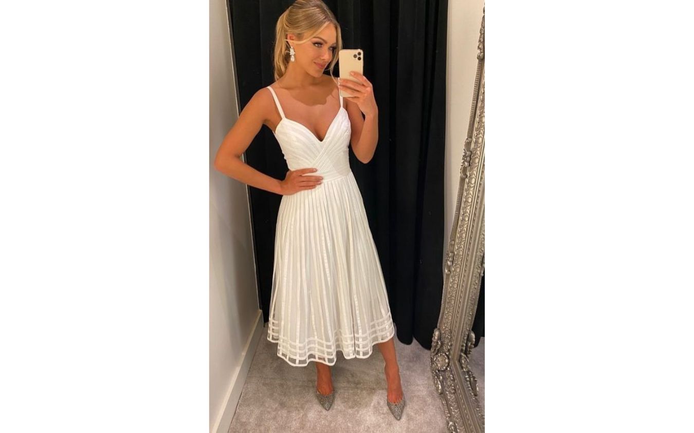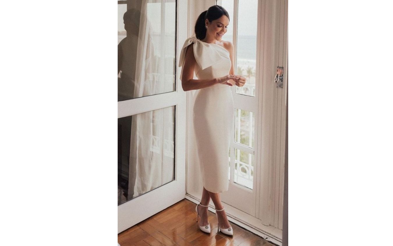 Não há como errar um look de casamento civil composto por um belo vestido midi gode!