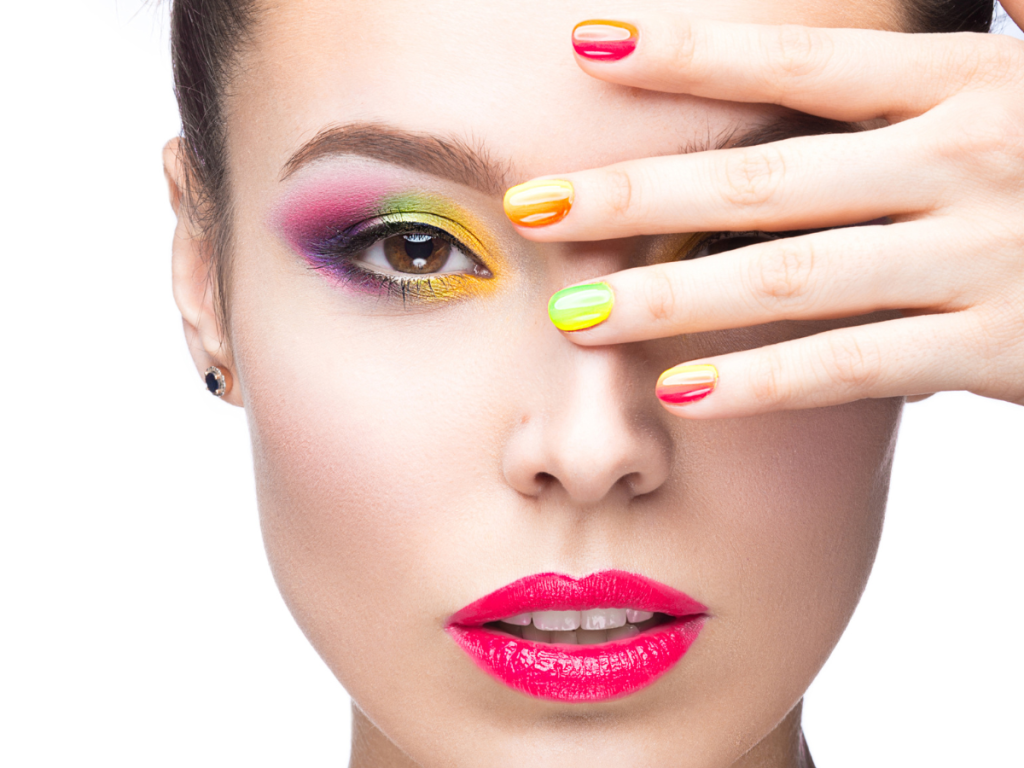 Outras cores que também combinam muito bem com as maquiagens coloridas são aquelas que trazem produtos neon em sua composição. Neste caso, o ideal é fazer uma mescla de apenas duas cores sobre o rosto, visto que a coloração se mostra bem expressiva.