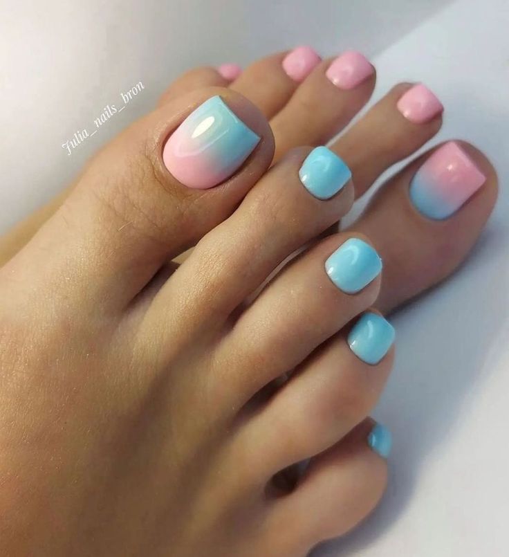 Uma das tendências mais inovadoras para as unhas dos pés é o efeito ombré, onde dois tons se misturam de forma suave.