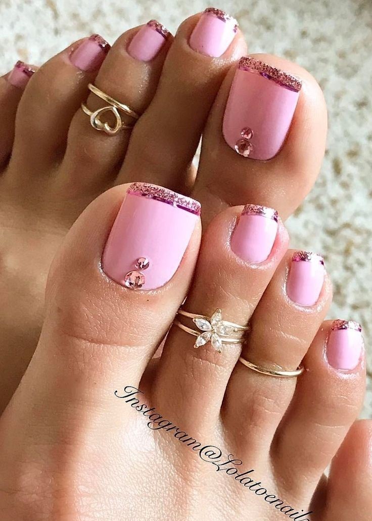 Para quem deseja um visual mais glamouroso, as unhas dos pés com pedrarias ou detalhes em foil são uma escolha certeira.
