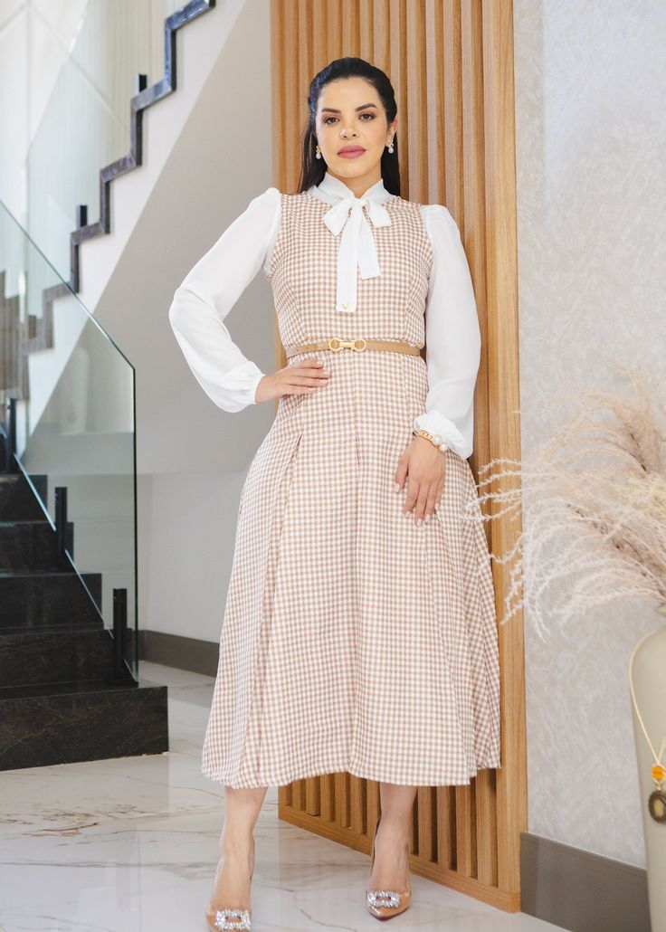 O tipo de vestido acaba perfeito para ocasiões diurnas e pode ser combinado com um scarpin para um visual elegante e tradicional.