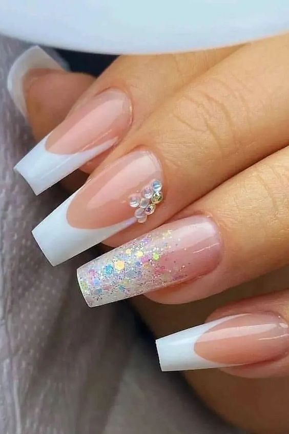 Não tem como falar em unhas brancas sem mencionar a francesinha. Esse estilo, que nunca sai de moda, ganha um upgrade com detalhes modernos.