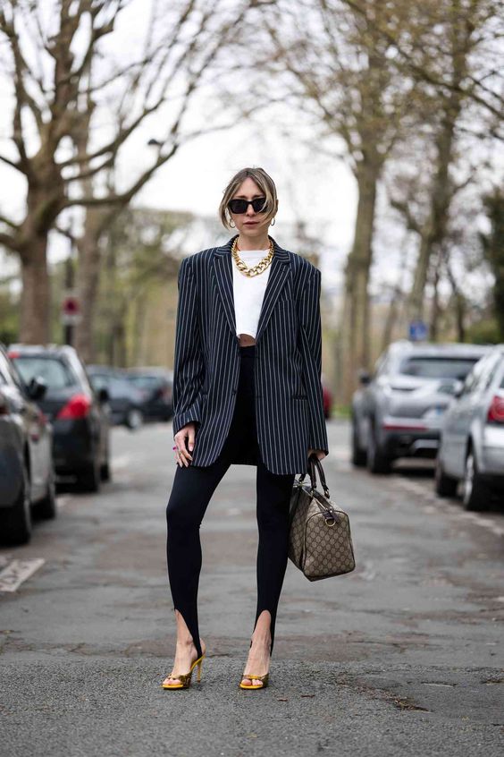 Engana-se também quem pensa que os looks de escritórios não podem aderir às leggings. Um bom exemplo vem do estilo office look, o qual traz a peça com um blazer bem estruturado.