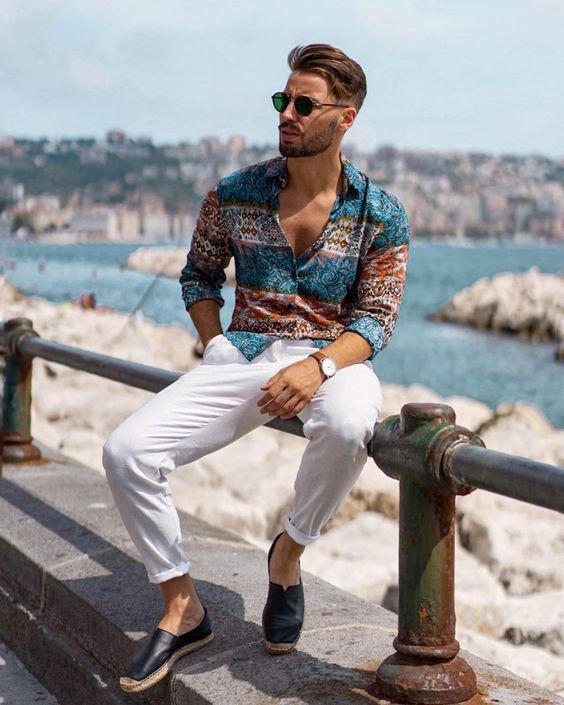 A combinação clássica branca entre as peças ainda será uma das mais escolhidas, até mesmo nos visuais masculinos. Assim vale apostar em uma camisa social, caso o evento seja mais formal ou então uma camiseta mais fresca com a coloração. Bermudas brancas também serão super bem-vindas.