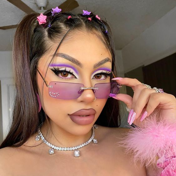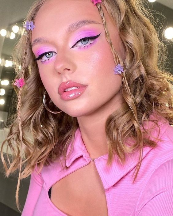A maquiagem dos anos 2000 foi marcada por cores vivas, brilho e glamour. As sombras coloridas, o delineador preto esfumado e o batom brilhante eram os elementos essenciais de qualquer look. Assim, representá-las atualmente não é muito difícil, uma vez que muitos desses elementos podem ser combinados.
