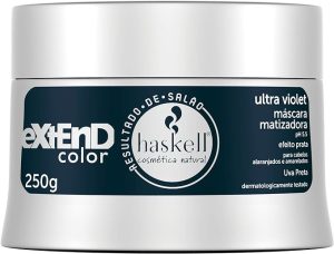 Outra opção bastante citada pelas consumidoras envolve a máscara criada pela Haskell. Chamada de Extend Color Ultra Violet, o produto é ideal para cabelos loiros e grisalhos, assim como também entrega muito bem o que promete. A opção, inclusive, combina super bem com fios bem cinzas.