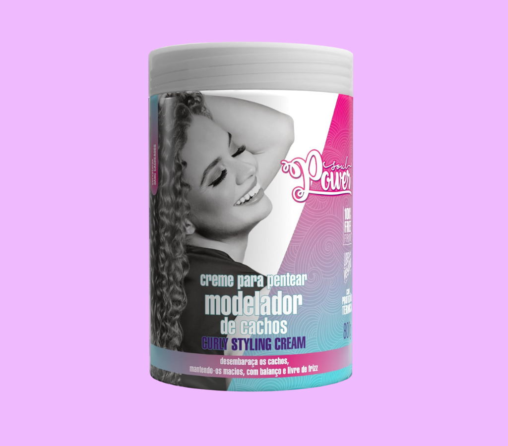 Conhecido pela boa definição, o creme Curly Styling Cream desenvolvido pela Soul Power traz tem uma fórmula bem concentrada, assim com traz proteção térmica as madeixas.