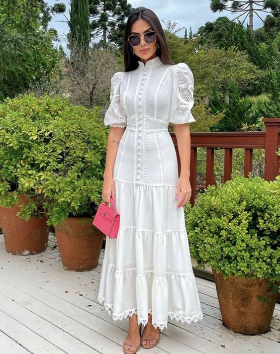 Outra opção incrível vem dos vestidos longos com cor monocromática. Aqui você pode escolher a cor que mais gosta, bem como potencializar o visual com tecidos diferentes.