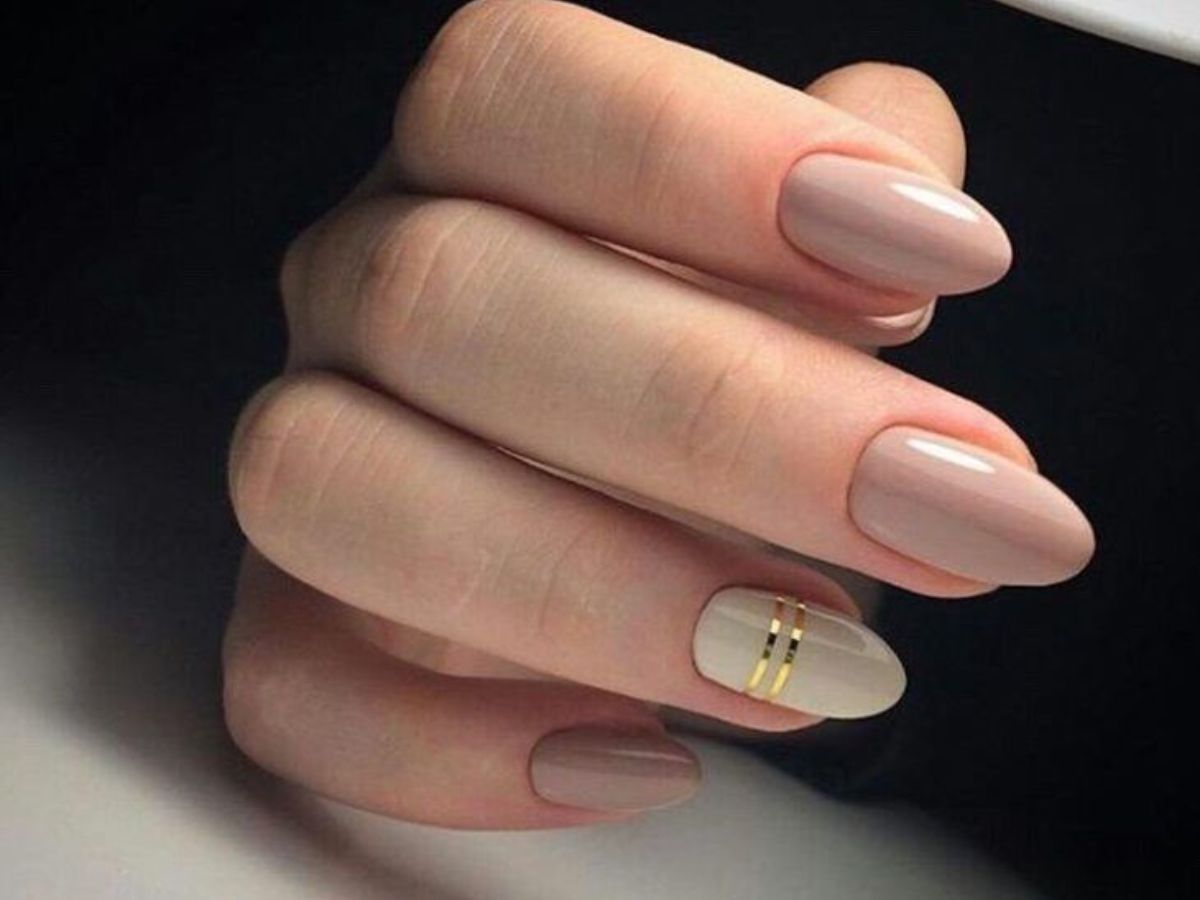Extremante elegante, nessa inspiração temos a mistura do nude, com o anelar em um tom de creme. E para dar apenas um toque mais chamativo, os fitilhos dourados, arrematam a produção, deixando mais moderna.