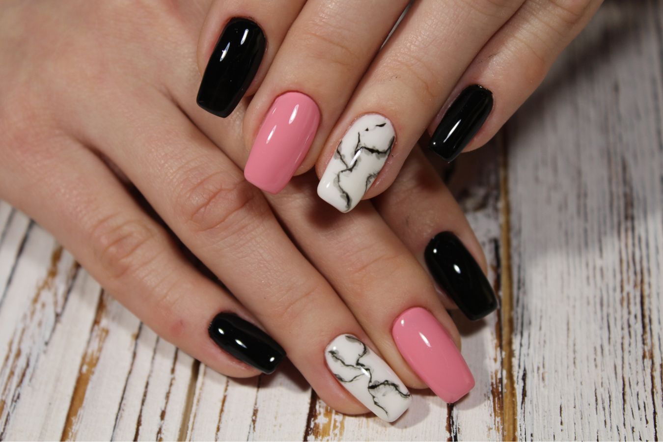 Se você está em busca de uma nail art mais delicada e criativa, a combinação de duas cores com filha única marmorizada é uma excelente opção.