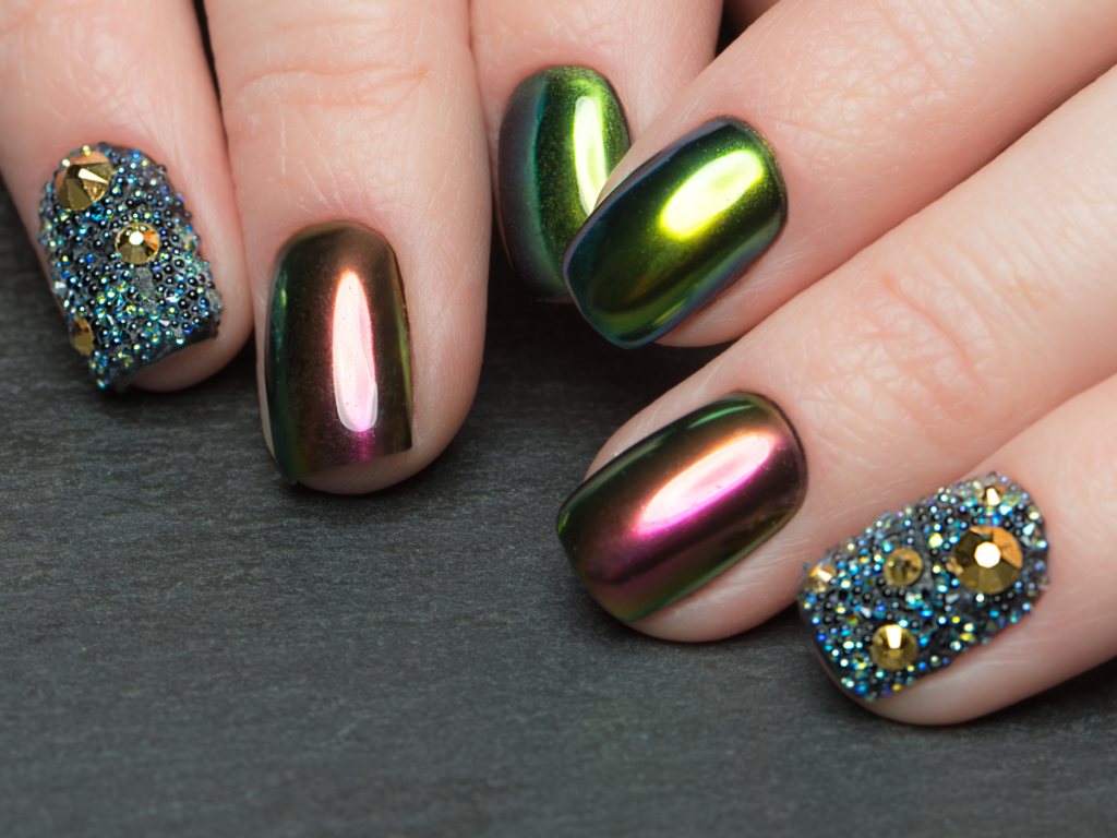 Por fim, não podemos terminar essa lista de inspirações de nail arts de inverno sem falar do esmalte cintilante. Assim como outras opções clarinhas para as temperaturas mais frias deste ano, o cintilante vem ganhando espaço.  Aposte no esmalte sem medo e crie looks super elegantes.