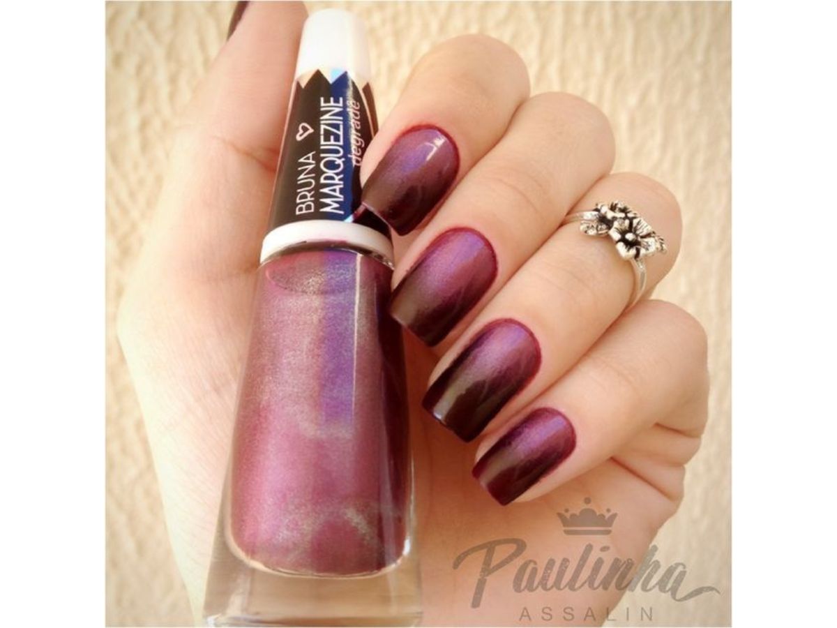Por meio de um imã na tampa do esmalte, o metálico das cores podia ser ajustado nas unhas de forma a criar um efeito degrade muito bonito.