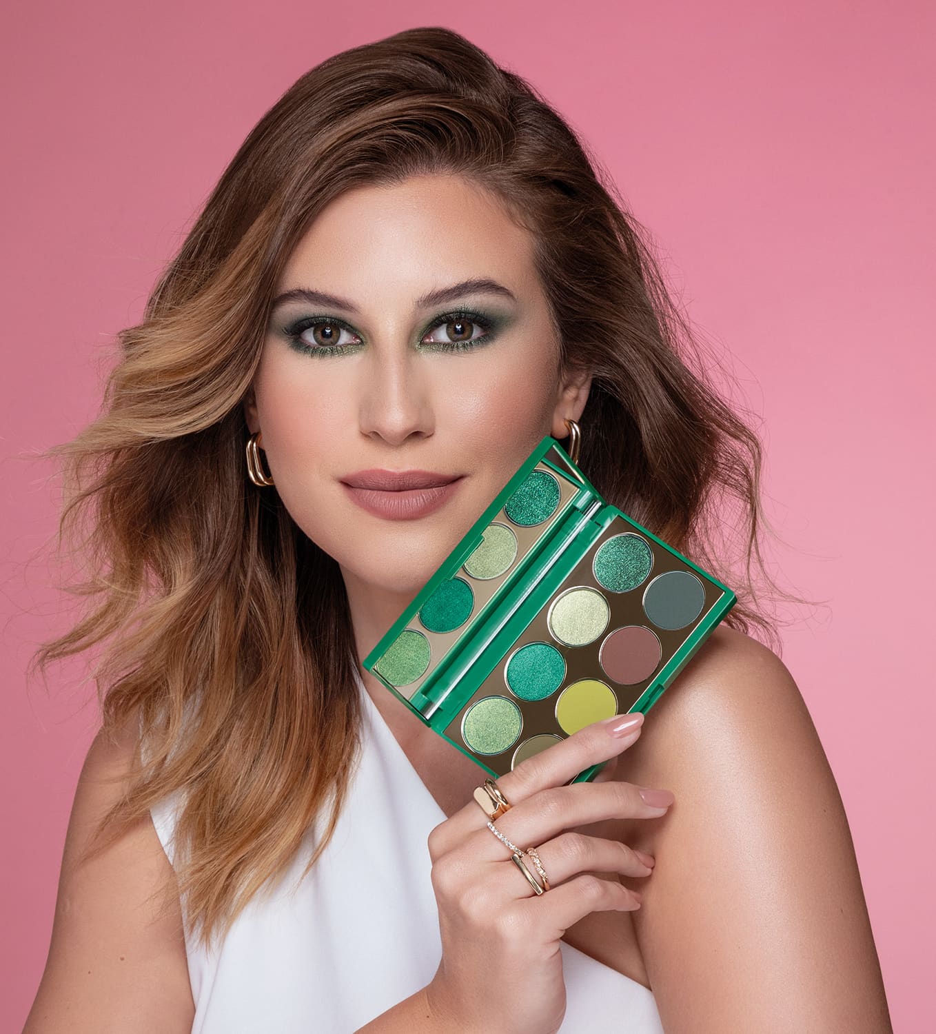 O nome green vem justamente da combinação de tons de verde e acabamentos variados. Além disso, traz cores bem pigmentadas e fáceis de esfumar, o que permite criar looks marcantes e criativos, segundo as consumidoras.