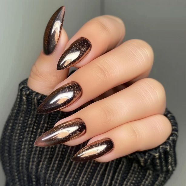 A evolução do esmalte cromado tradicional, por outro lado, trouxe um brilho mais intenso e dinâmico, principalmente nas cores escuras como o marrom.