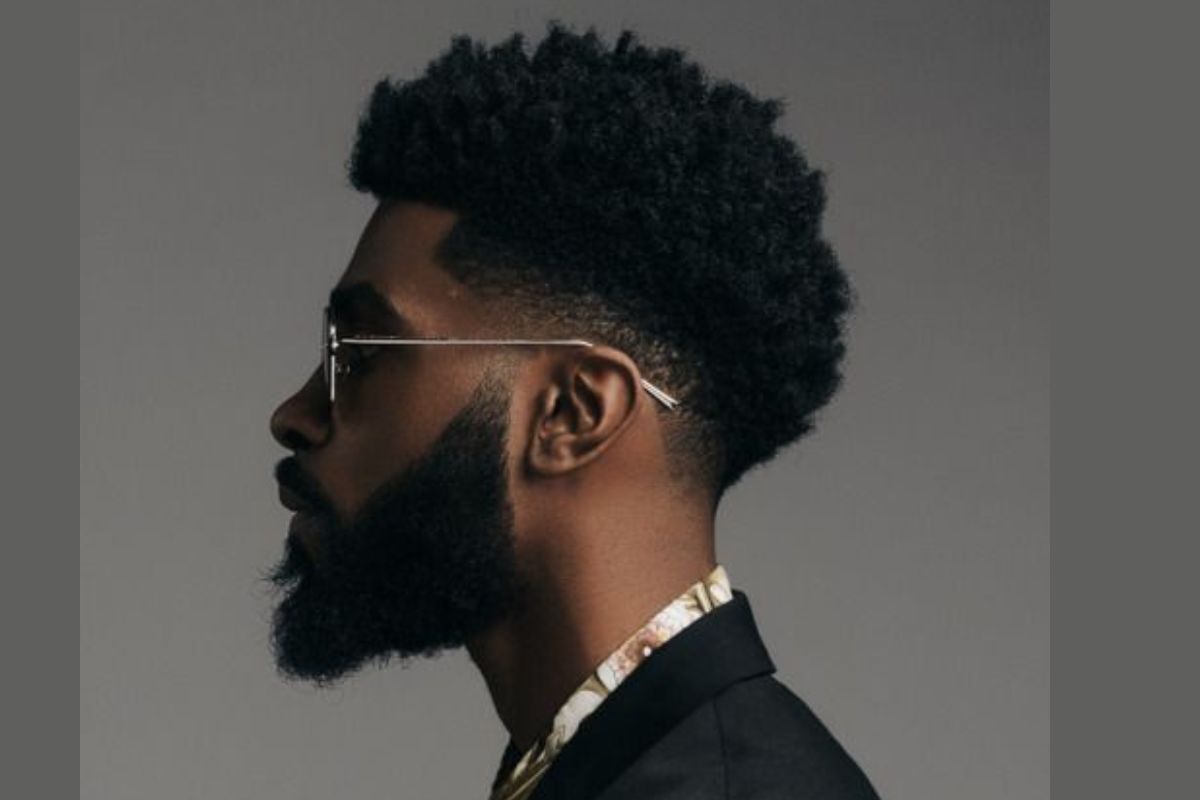 O faded com topo volumoso é um dos cortes mais versáteis para cabelo crespo masculino, adaptando-se a diferentes comprimentos e texturas.