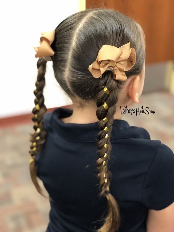 Por fim, vale pontuar que a chiquinha com trança é clássica também como penteado infantil simples. Neste caso ambos os lados da cabeça ganham rabinhos e cada um deles trancinhas super harmônicas. Você pode apostar em mais de uma trança se preferir.