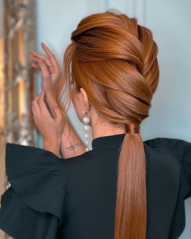 2. Rabo de cavalo bem penteado alto também está entre os penteados chiques de ano novo