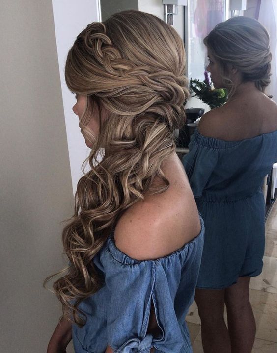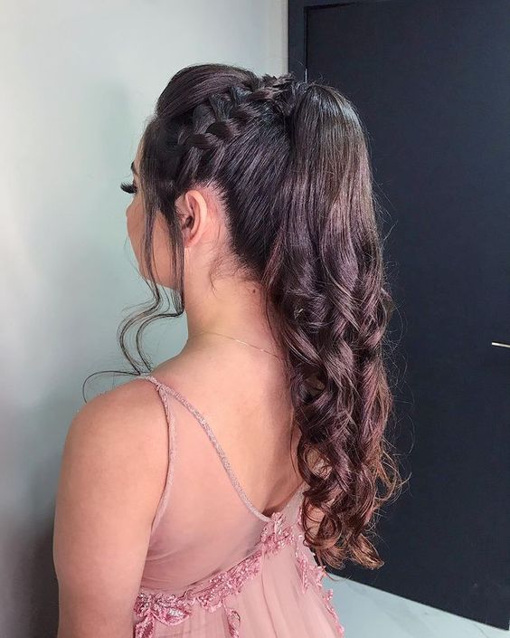 Em primeiro lugar temos o semi-preso com trança. Aqui, as ondas dos penteados com babyliss podem ser criadas nas pontas, bem como embelezada com uma trança no topo das madeixas. O efeito fica super romântico.