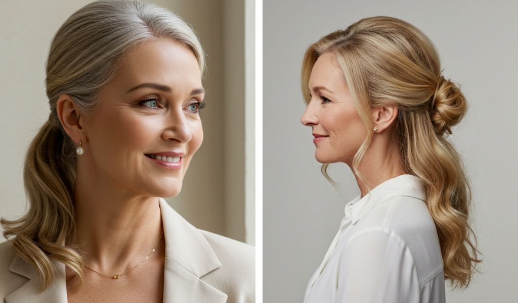 O rabo de cavalo é sempre uma opção entre os penteados para mulheres maduras, ou não, e se ele for polido se torna ainda mais elegante.