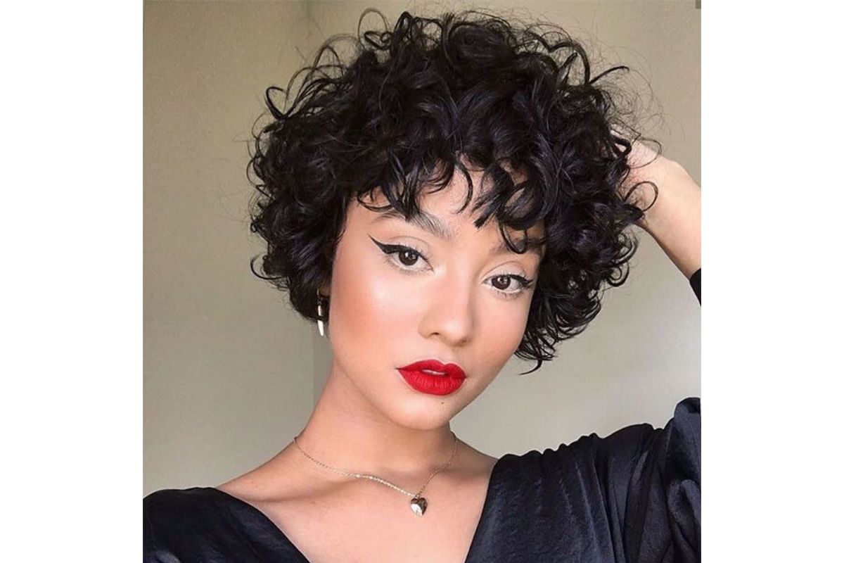 Corte de cabelo cacheado curto: Sidecut com Franjão