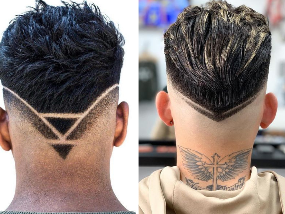 Embora o nome seja difícil, o corte V. Shaped é caracterizado como um corte masculino onde a parte de trás do cabelo acaba estilizada para criar uma forma de “V” invertido. Neste caso, o risco do cabelo masculino vem geralmente na nuca.