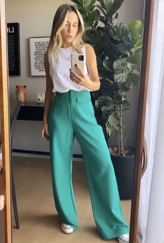 Quem também combina bem com o visual de verão nos escritórios é a calça pantalona. Seu modelo mais soltinho pode se encaixar bem no visual mais sério que o ambiente corporativo precisa. Assim aposte nela com camisas básicas ou de modelo monocromático e terá um visual incrível.
