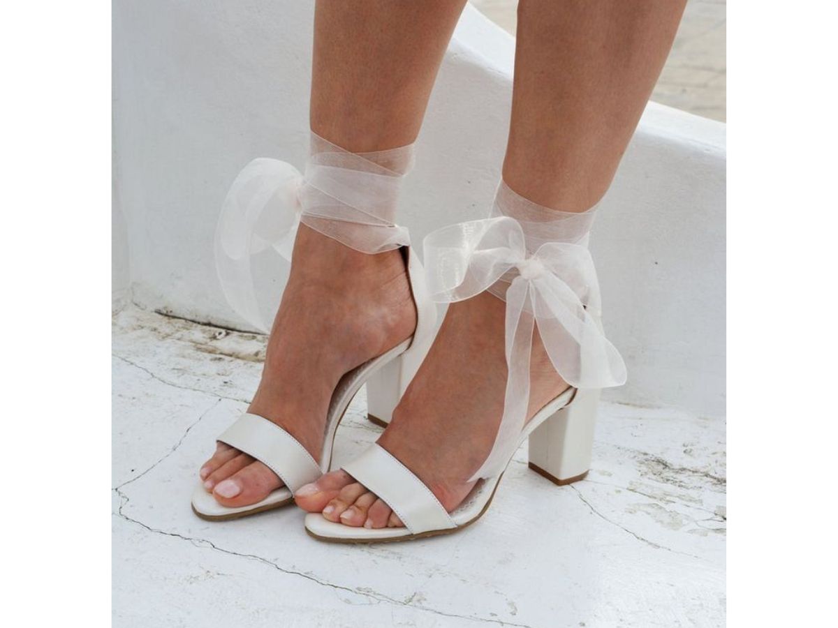 O modelo do exemplo é lindo, sensual, mas ao mesmo tempo com uma delicadeza extra por conta do laço de organza no tornozelo.