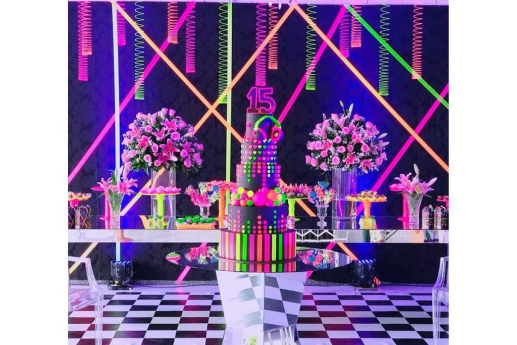 Festa de 15 anos 2024: Vibração ‘Balada’ em alta! Da decoração luminosa aos vestidos brilhantes, mergulhe nas tendências do próximo ano.