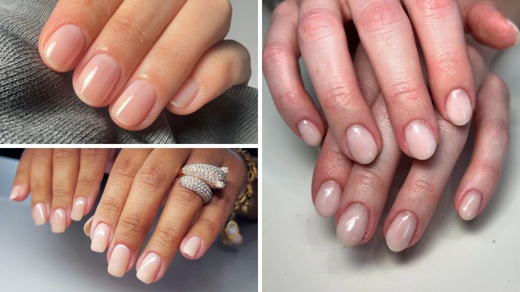 - Visual: unhas curtas, com acabamento polido e brilho úmido.