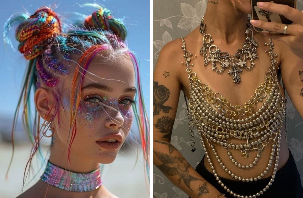 As miçangas complementam essa estética, aparecendo em colares, pulseiras e até detalhes nas roupas. Para quem gosta de personalização, criar acessórios de miçangas é uma forma divertida de garantir um visual único.