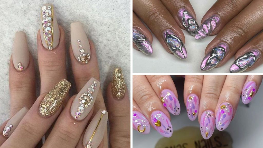 Unhas maximalistas prometem dominar a moda em 2025 com seus designs ousados e extravagantes.