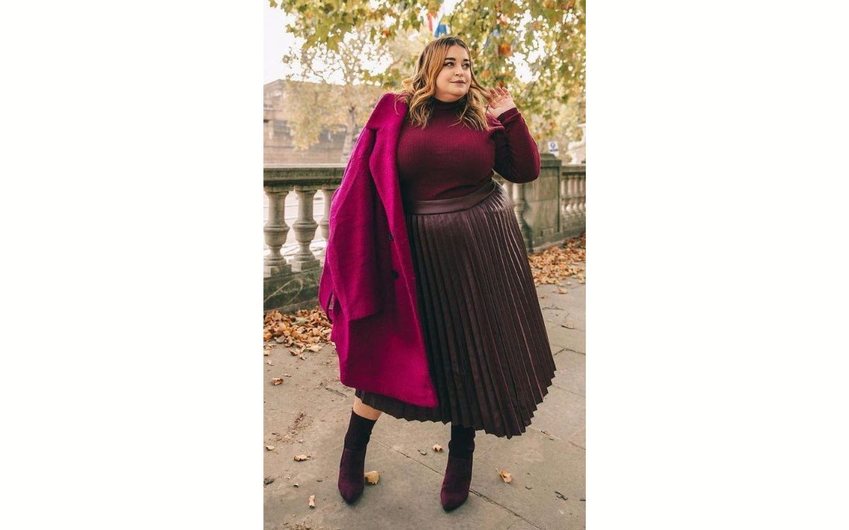 As saias plissadas são uma escolha perfeita para um look plus size elegante neste inverno.