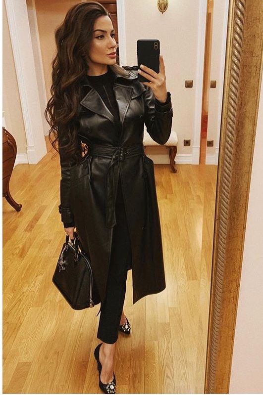 Assim como o pelo, quem está nas trends de looks de frio é o casaco longo de couro. Neste caso não há dúvidas de quanto a peça torna o visual mais autêntico e sofisticado. O salto, inclusive, é a combinação perfeita para a peça.