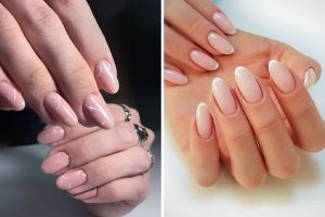Diferente das unhas ovais, que possuem lados suavemente curvados e uma ponta arredondada mais ampla, as unhas almond têm uma ponta mais estreita e cônica.